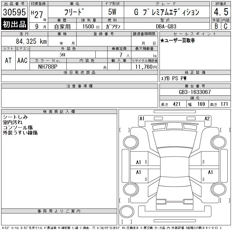 Honda FREED с аукциона Японии CAA Tokyo лот № 30595