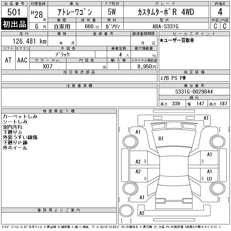 Daihatsu Atrai Wagon с аукциона Японии CAA Tokyo лот № 501