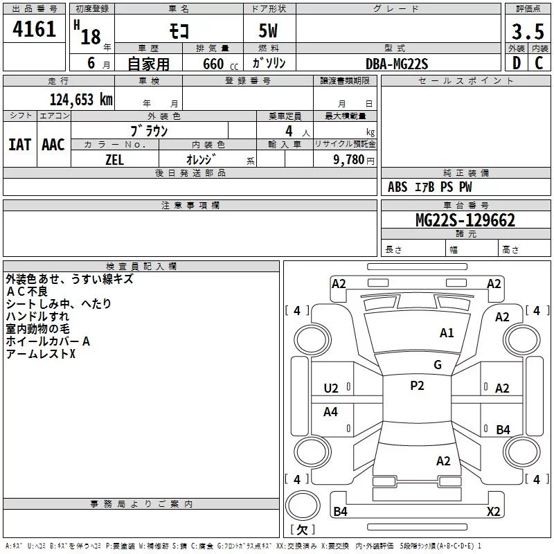 Nissan MOCO с аукциона Японии TAA Shikoku лот № 4161