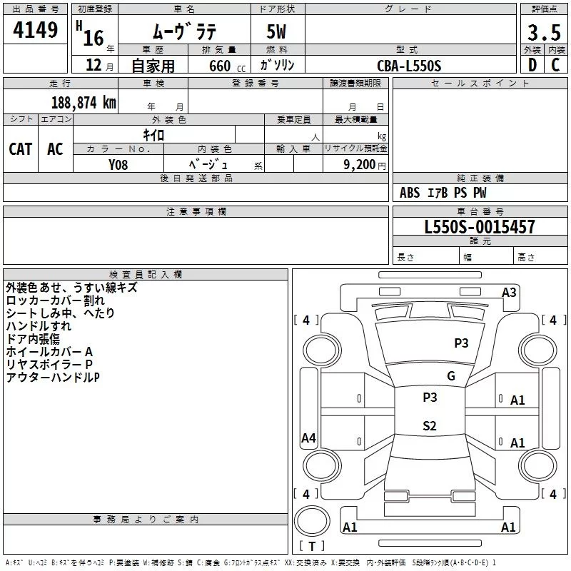Daihatsu MOVE LATTE с аукциона Японии TAA Shikoku лот № 4149