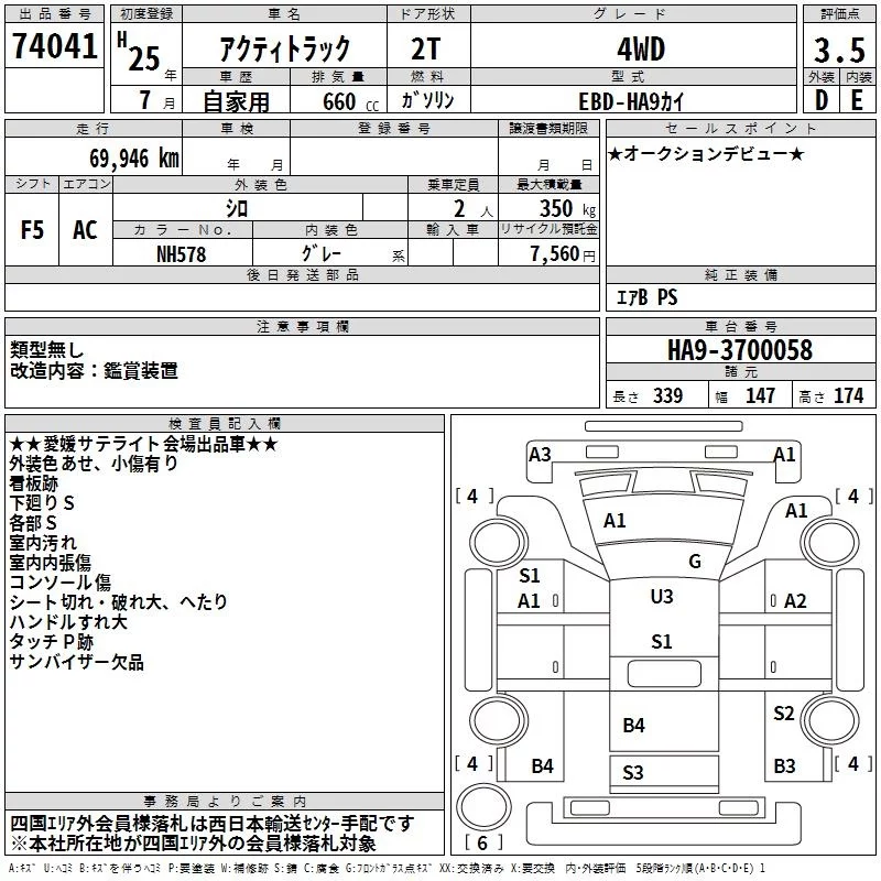 Honda ACTY TRUCK с аукциона Японии TAA Shikoku лот № 74041