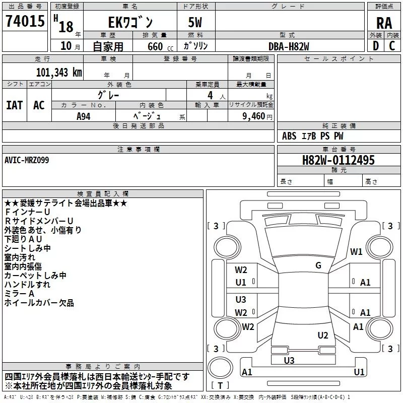 Mitsubishi EK WAGON с аукциона Японии TAA Shikoku лот № 74015