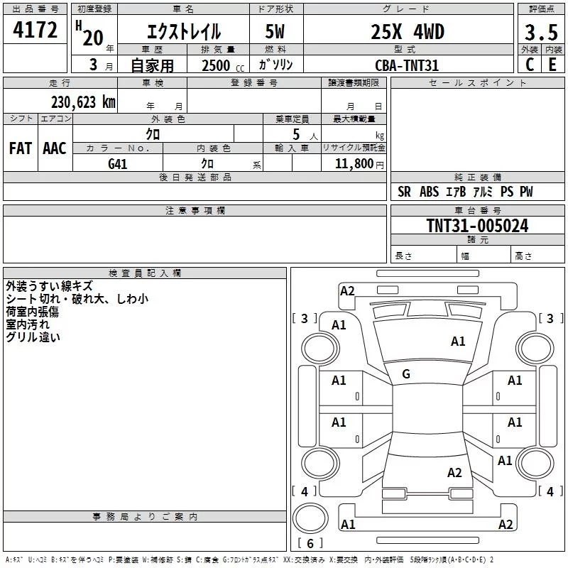 Nissan X-TRAIL с аукциона Японии TAA Shikoku лот № 4172
