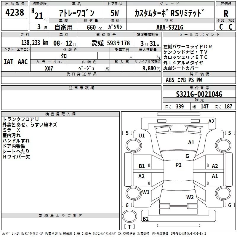 Daihatsu Atrai Wagon с аукциона Японии TAA Shikoku лот № 4238