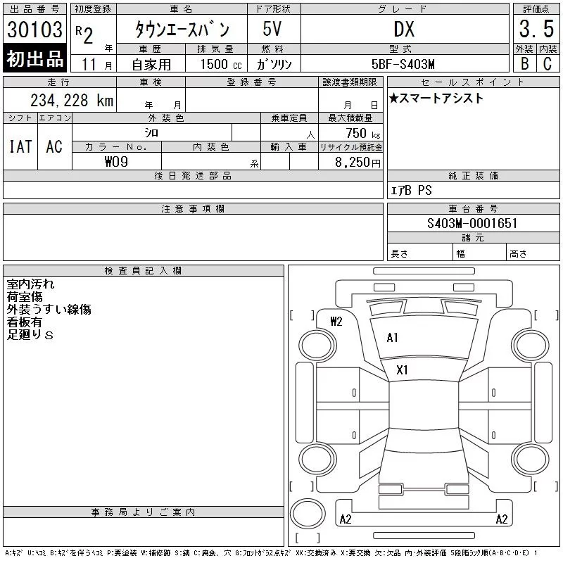 Toyota TOWN ACE VAN с аукциона Японии CAA Gifu лот № 30103
