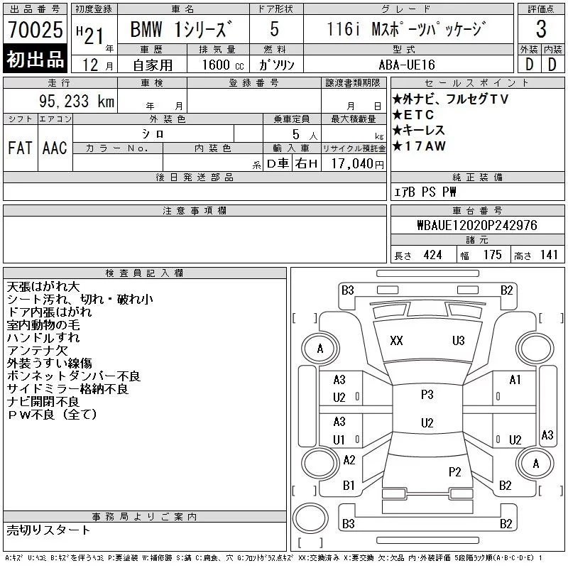 BMW 1-Series с аукциона Японии CAA Gifu лот № 70025