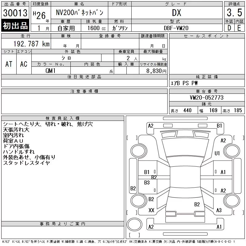 Nissan NV200 с аукциона Японии CAA Gifu лот № 30013
