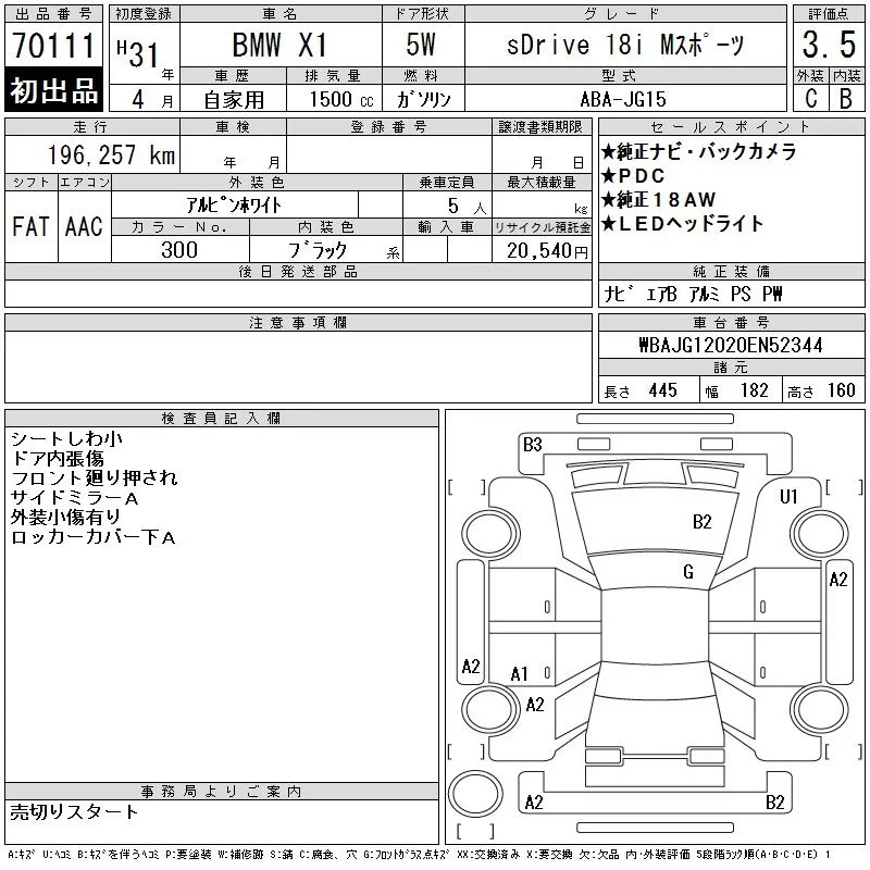 BMW X1 с аукциона Японии CAA Gifu лот № 70111