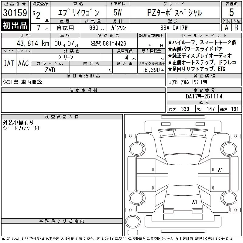 Suzuki EVERY WAGON с аукциона Японии CAA Gifu лот № 30159