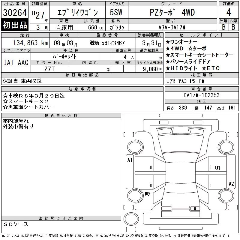 Suzuki EVERY WAGON с аукциона Японии CAA Gifu лот № 30264