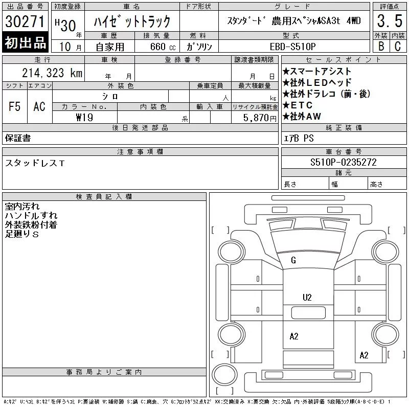 Daihatsu HIJET TRUCK с аукциона Японии CAA Gifu лот № 30271