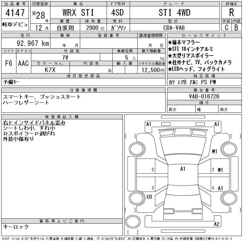 Subaru WRX с аукциона Японии CAA Gifu лот № 4147