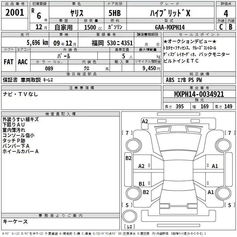 Toyota YARIS с аукциона Японии TAA Kyushu лот № 2001