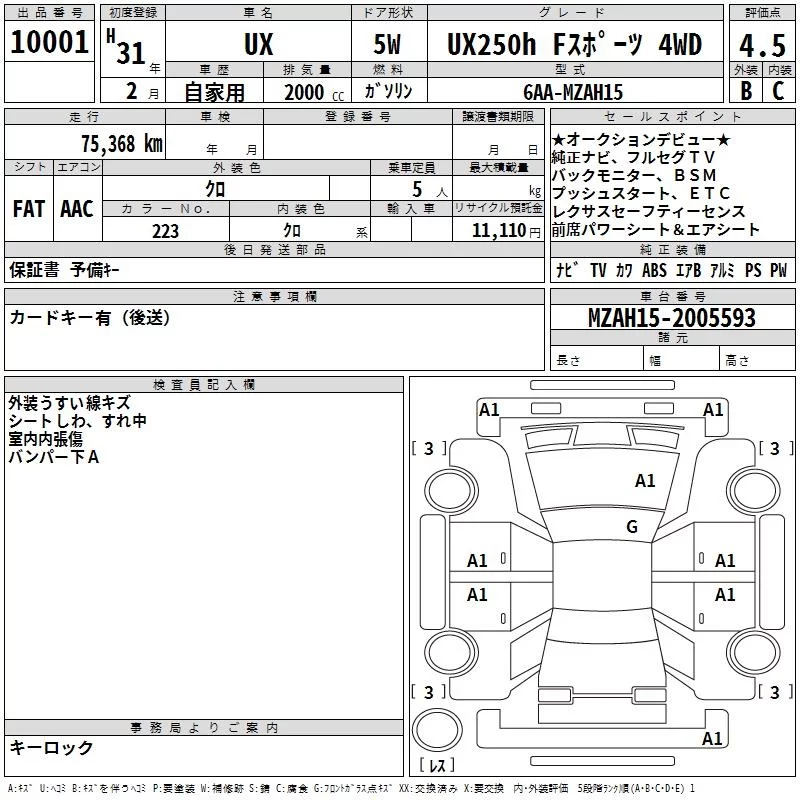 Lexus UX с аукциона Японии TAA Kyushu лот № 10001