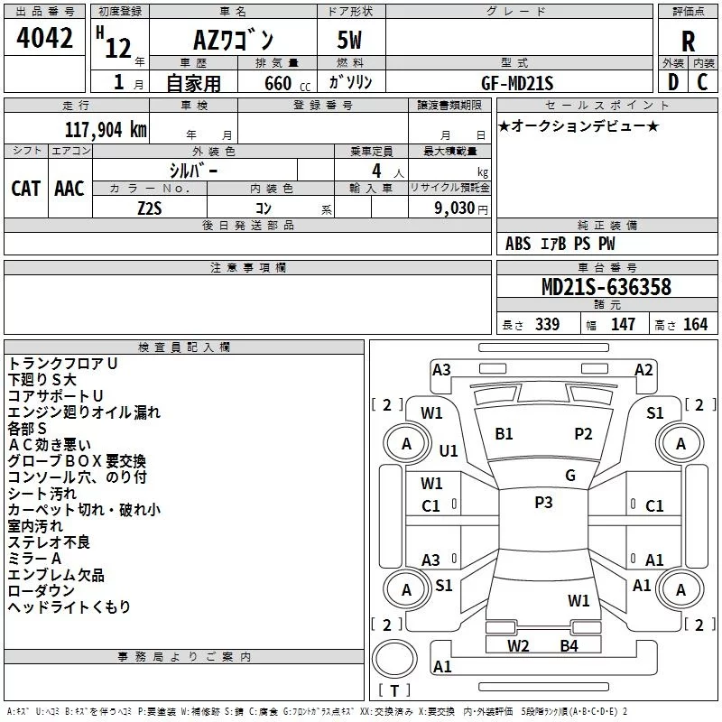 Mazda AZ WAGON с аукциона Японии TAA Kyushu лот № 4042