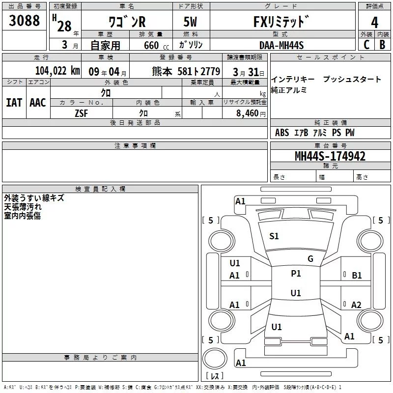 Suzuki WAGON R с аукциона Японии TAA Kyushu лот № 3088