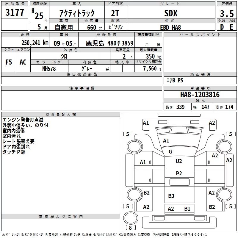 Honda ACTY TRUCK с аукциона Японии TAA Kyushu лот № 3177