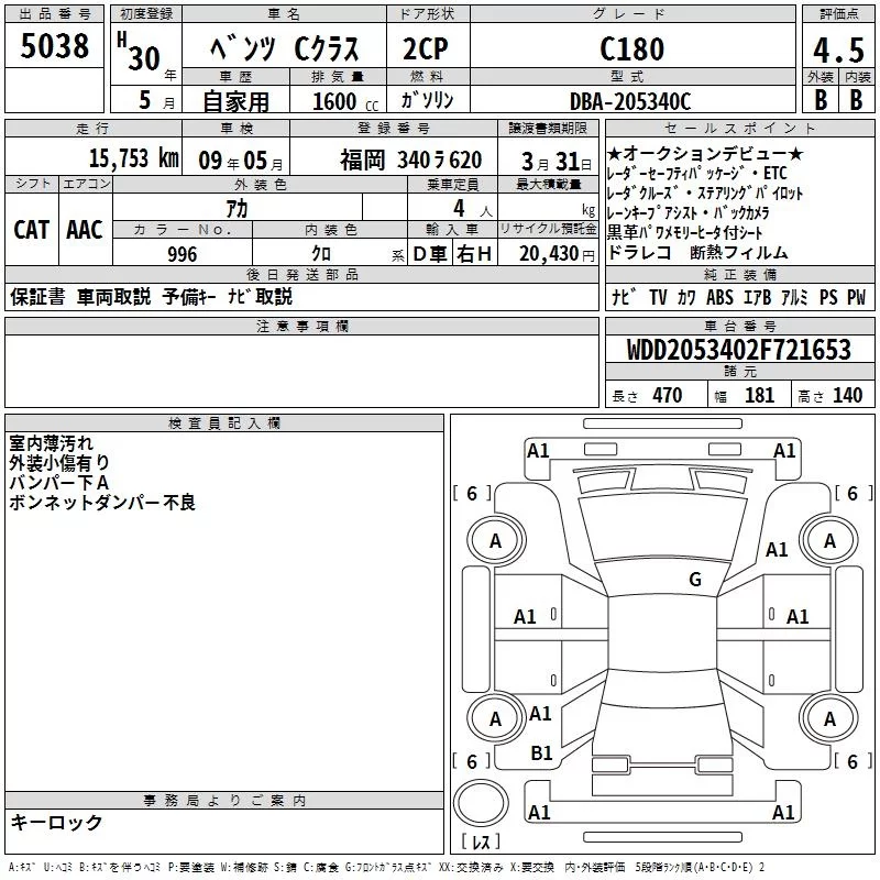 Mercedes-Benz C CLASS с аукциона Японии TAA Kyushu лот № 5038