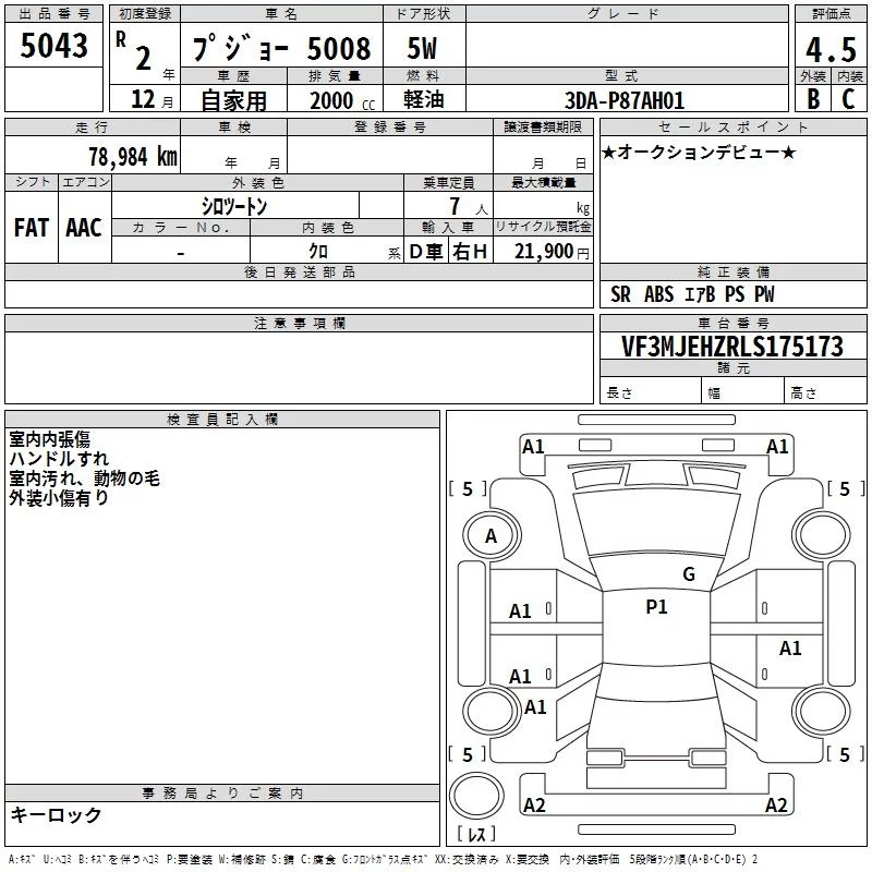 Peugeot 5008 с аукциона Японии TAA Kyushu лот № 5043