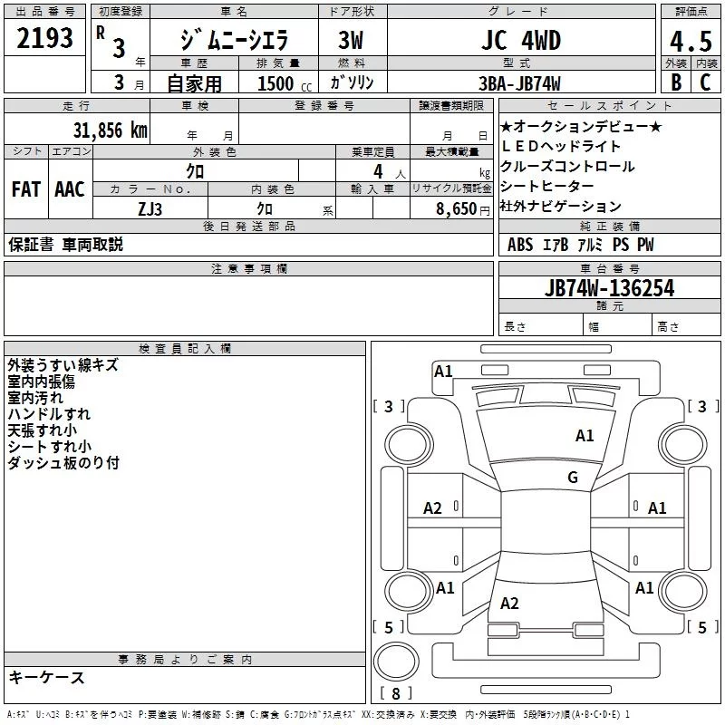 Suzuki JIMNY SIERRA с аукциона Японии TAA Kyushu лот № 2193