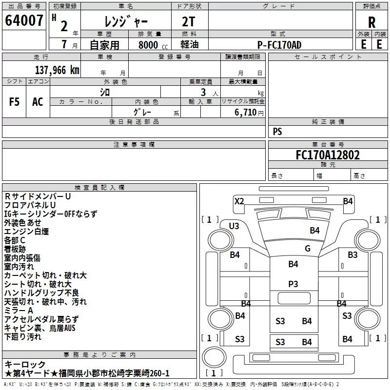 Hino RANGER с аукциона Японии TAA Kyushu лот № 64007