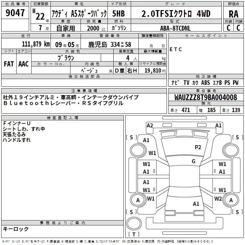 Audi A5 с аукциона Японии TAA Minami Kyushu лот № 9047