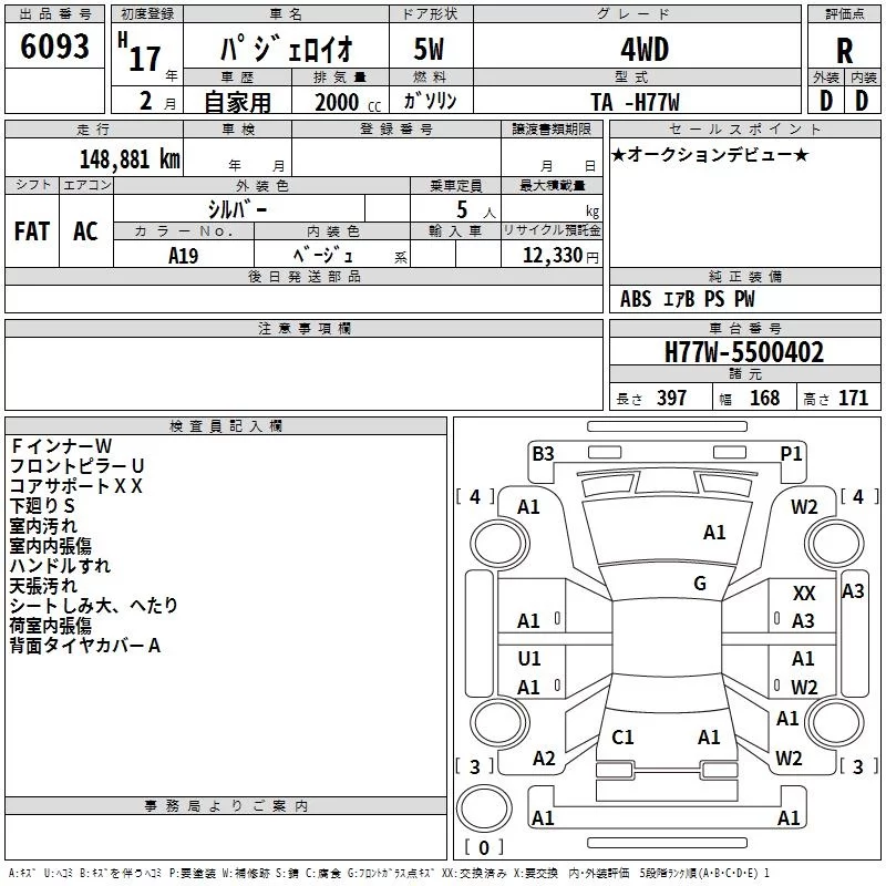 Mitsubishi PAJERO IO с аукциона Японии TAA Minami Kyushu лот № 6093