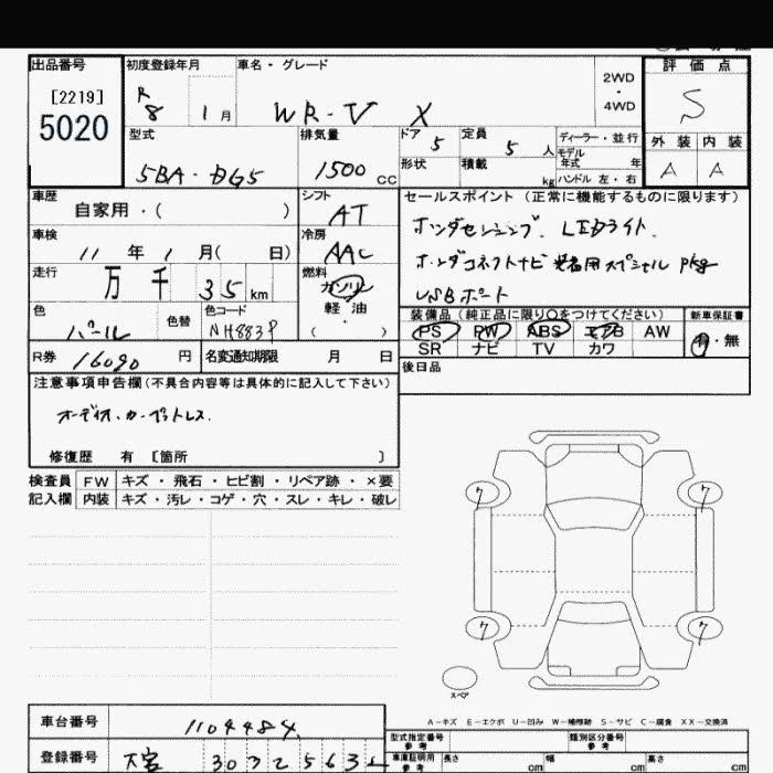 Honda WR-V с аукциона Японии JU Saitama лот № 5020
