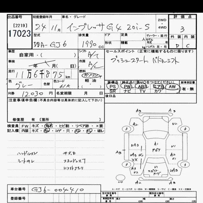 Subaru IMPREZA G4 с аукциона Японии JU Saitama лот № 17023