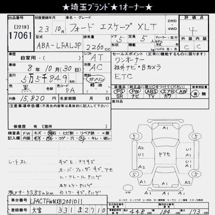 Ford ESCAPE с аукциона Японии JU Saitama лот № 17061