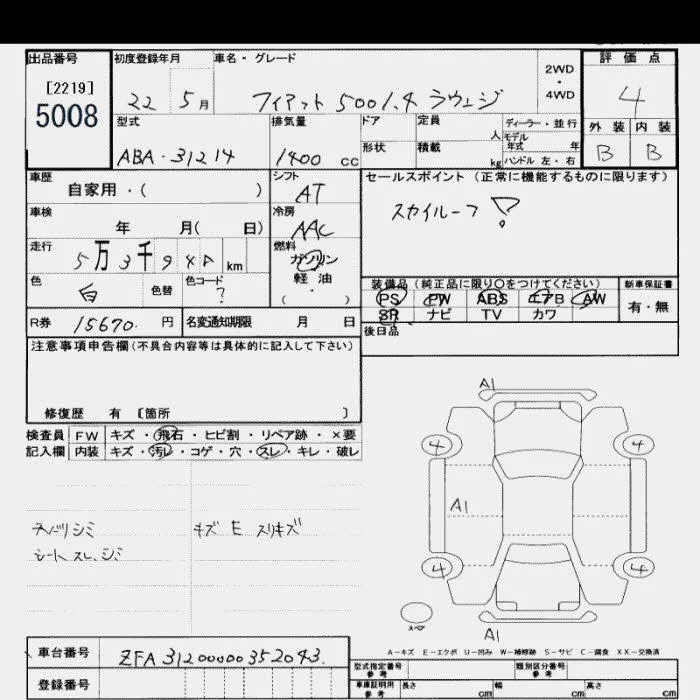 Fiat 500 с аукциона Японии JU Saitama лот № 5008