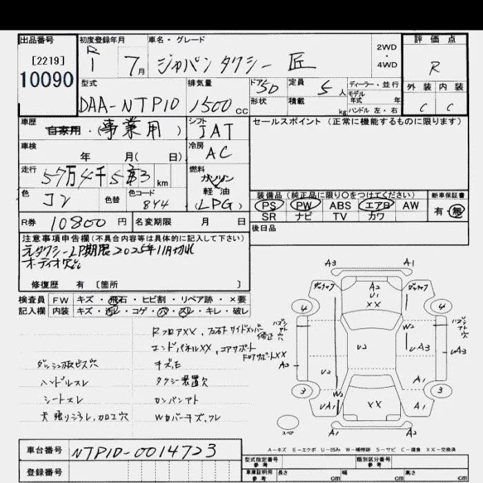 Toyota JPN TAXI с аукциона Японии JU Saitama лот № 10090