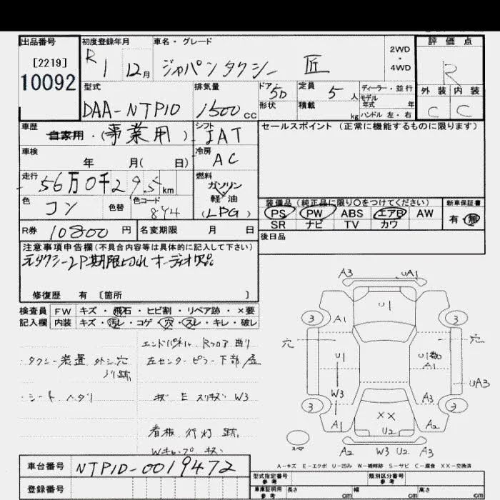 Toyota JPN TAXI с аукциона Японии JU Saitama лот № 10092