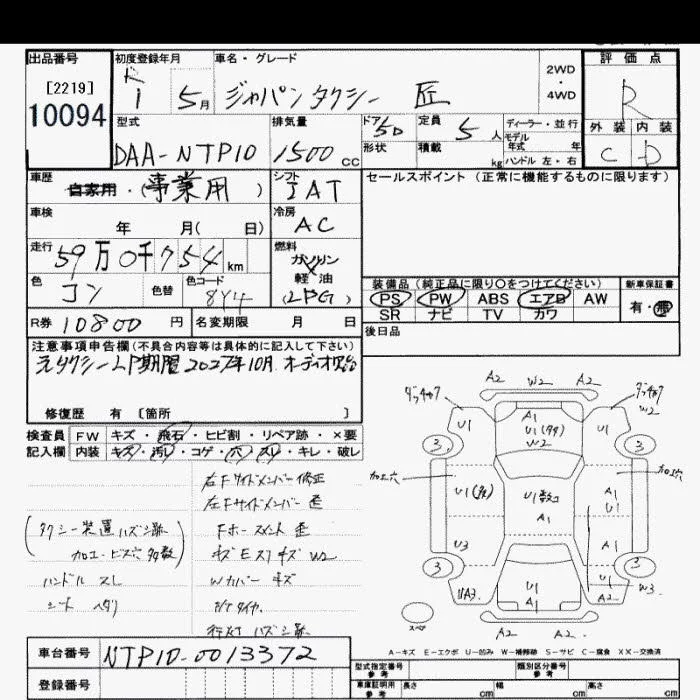 Toyota JPN TAXI с аукциона Японии JU Saitama лот № 10094