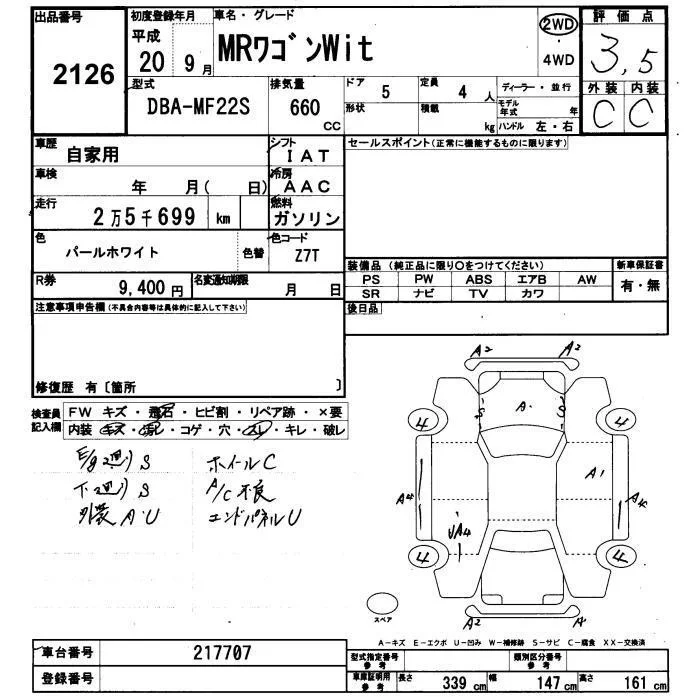 Suzuki MRWAGON с аукциона Японии JU Yamaguchi лот № 2126