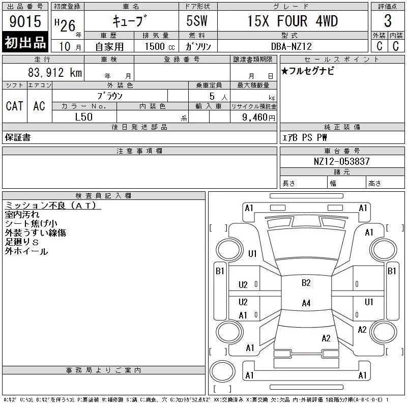 Nissan CUBE с аукциона Японии CAA Tohoku лот № 9015