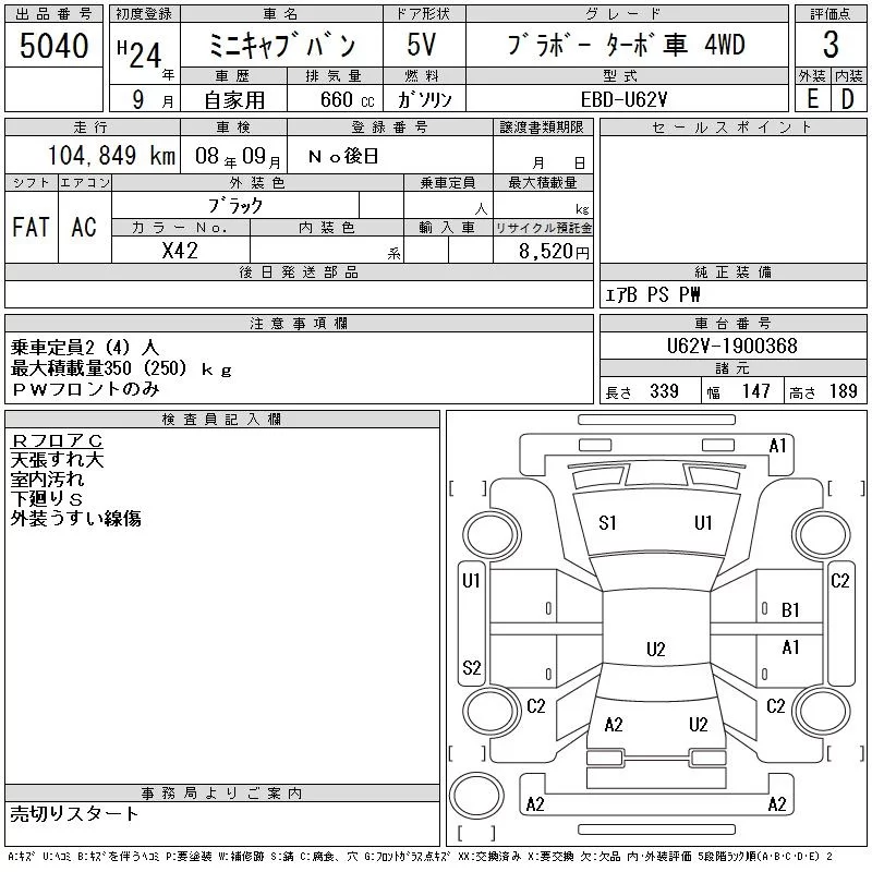 Mitsubishi MINICAB VAN с аукциона Японии CAA Tohoku лот № 5040
