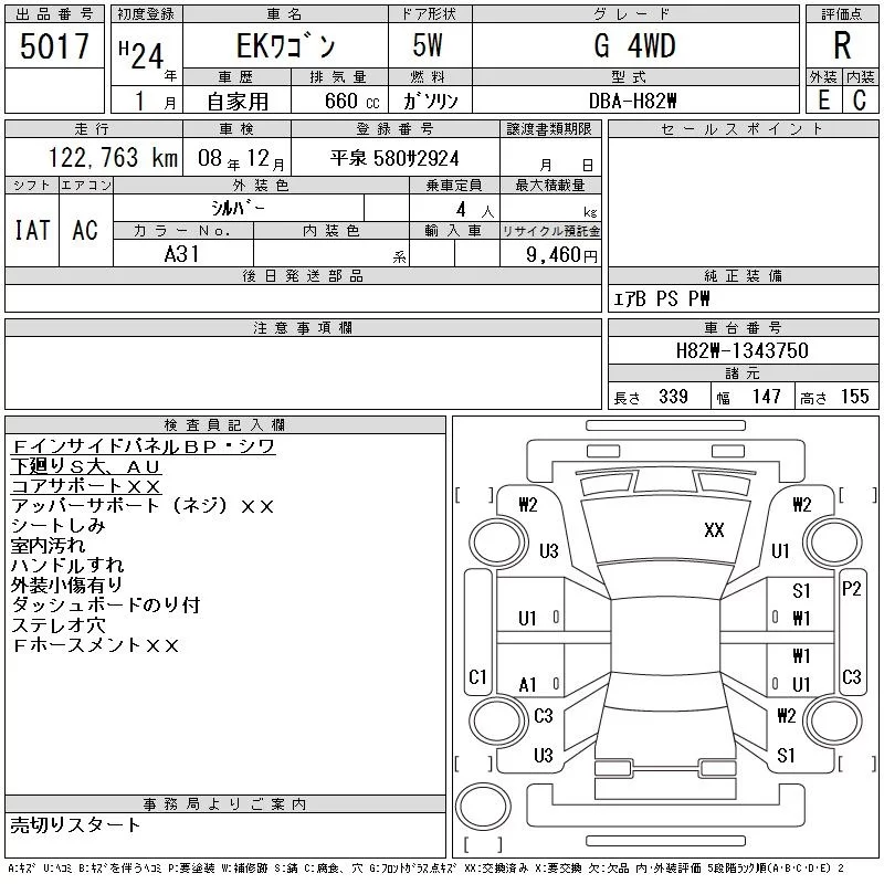 Mitsubishi EK WAGON с аукциона Японии CAA Tohoku лот № 5017