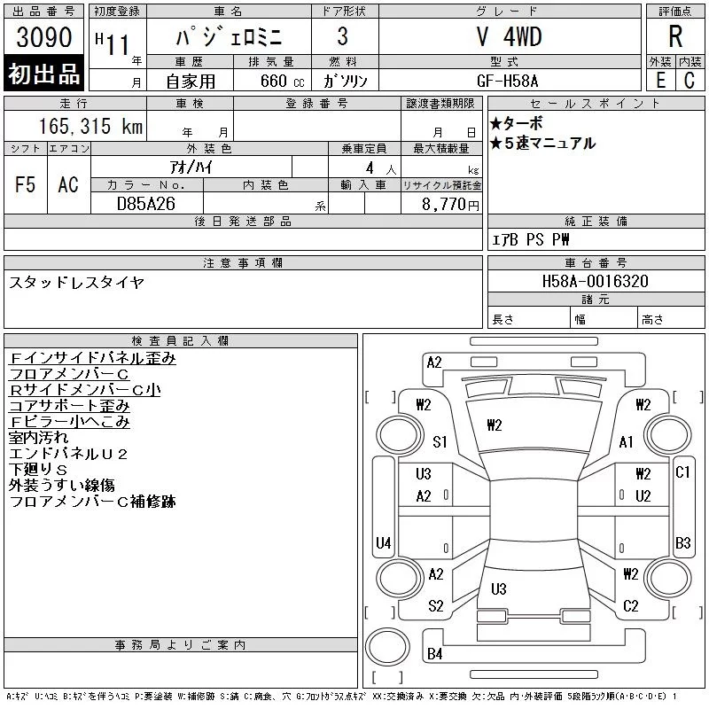 Mitsubishi PAJERO MINI с аукциона Японии CAA Tohoku лот № 3090