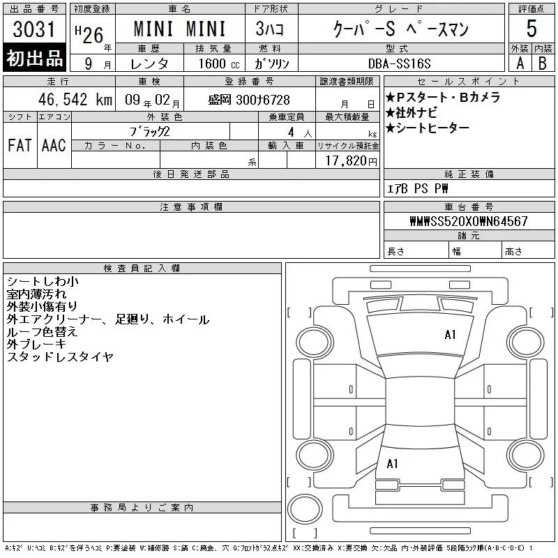 BMW MINI с аукциона Японии CAA Tohoku лот № 3031