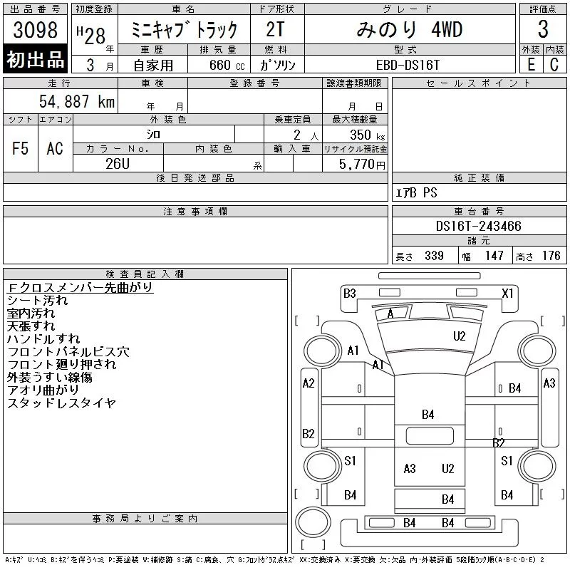 Mitsubishi MINICAB TRUCK с аукциона Японии CAA Tohoku лот № 3098