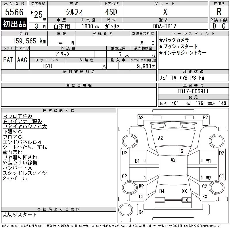 Nissan SYLPHY с аукциона Японии CAA Tohoku лот № 5566