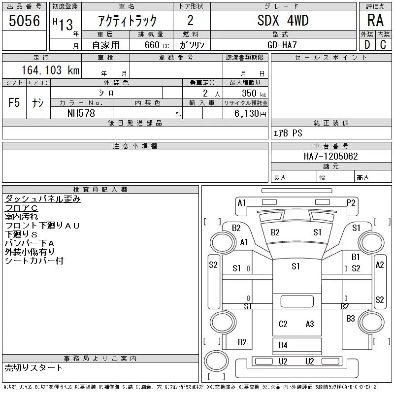 Honda ACTY TRUCK с аукциона Японии CAA Tohoku лот № 5056