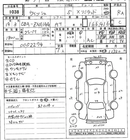Toyota WISH с аукциона Японии SAA Sapporo лот № 1038