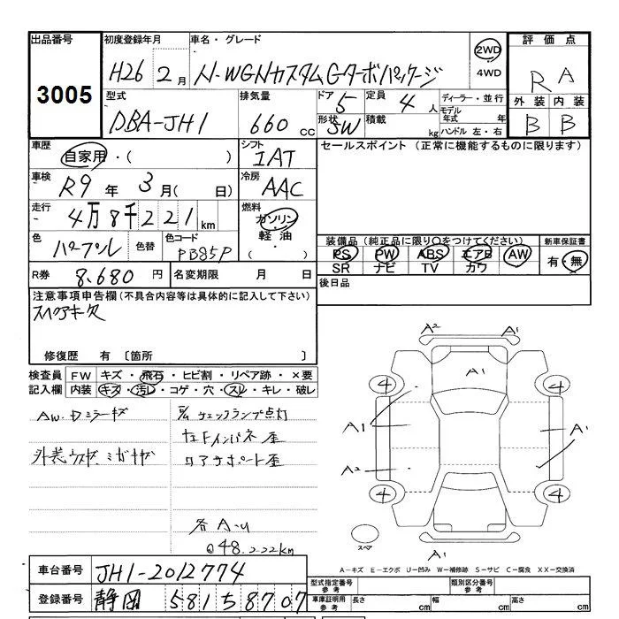 Honda N WGN с аукциона Японии JU Shizuoka лот № 3005
