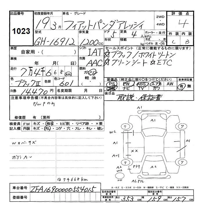 Fiat PANDA с аукциона Японии JU Shizuoka лот № 1023