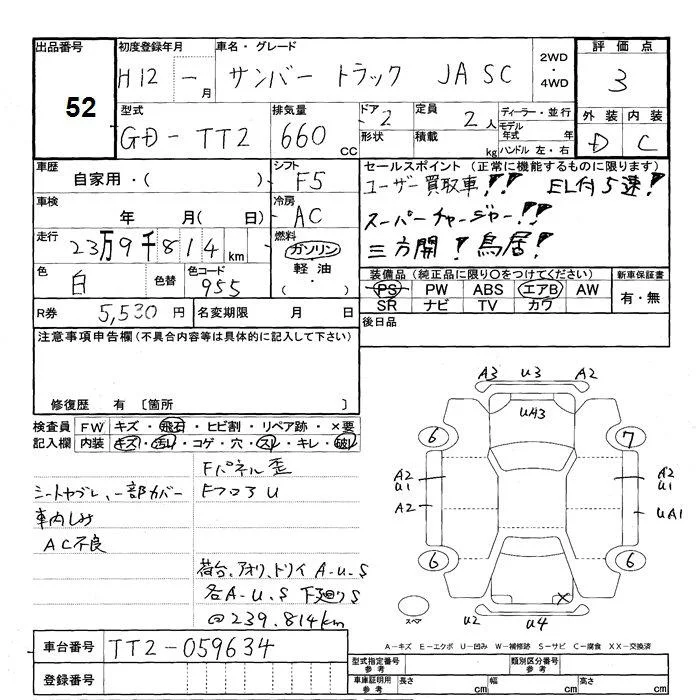 Subaru SAMBAR с аукциона Японии JU Shizuoka лот № 52
