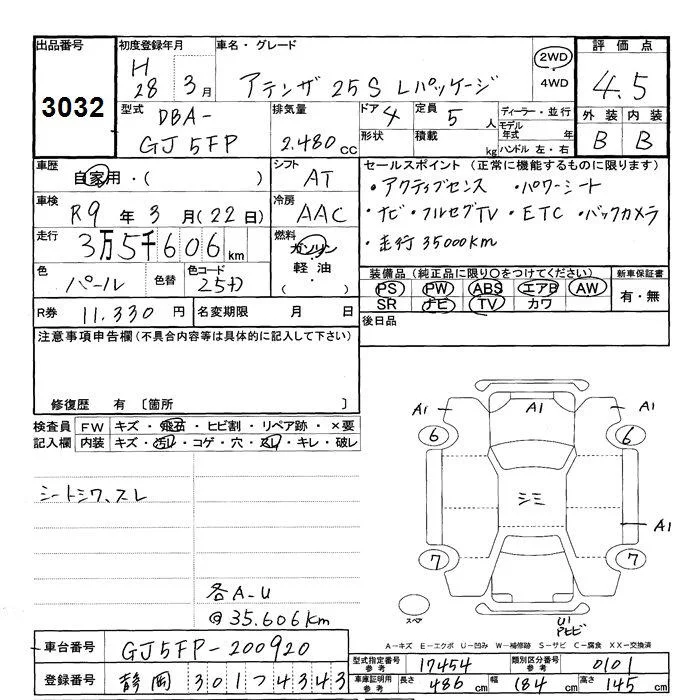 Mazda ATENZA SEDAN с аукциона Японии JU Shizuoka лот № 3032