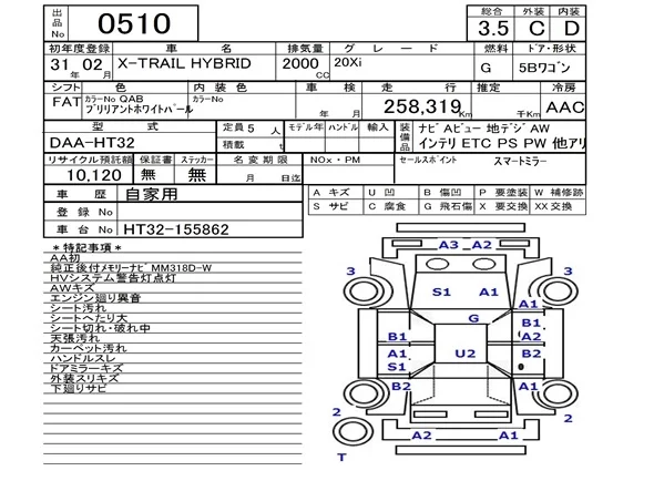 Nissan X-TRAIL с аукциона Японии NAA Fukuoka лот № 510