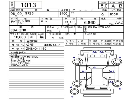 Toyota GT 86 с аукциона Японии NAA Fukuoka лот № 1013